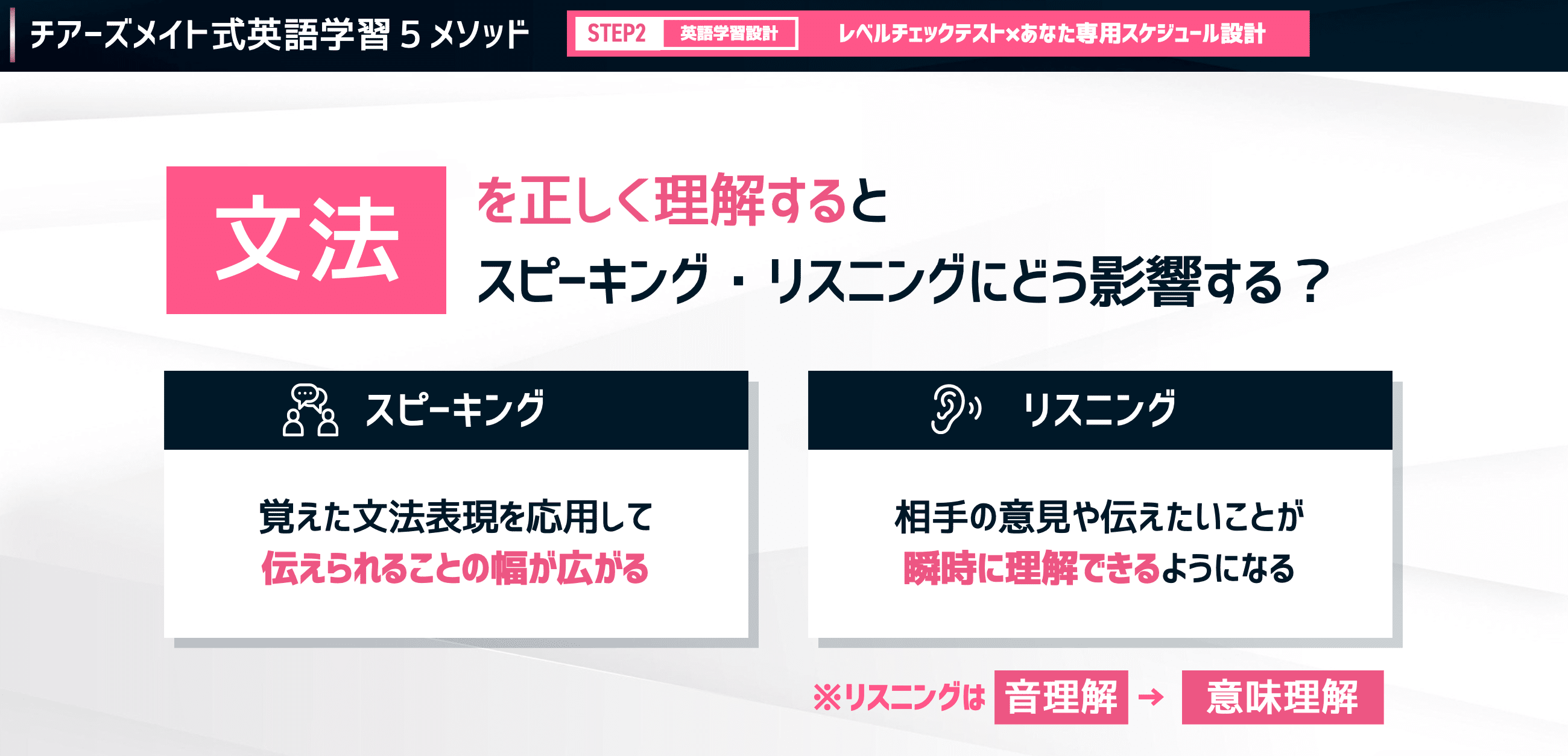 文法もまた、スピーキングとリスニングに大きく関わっています。