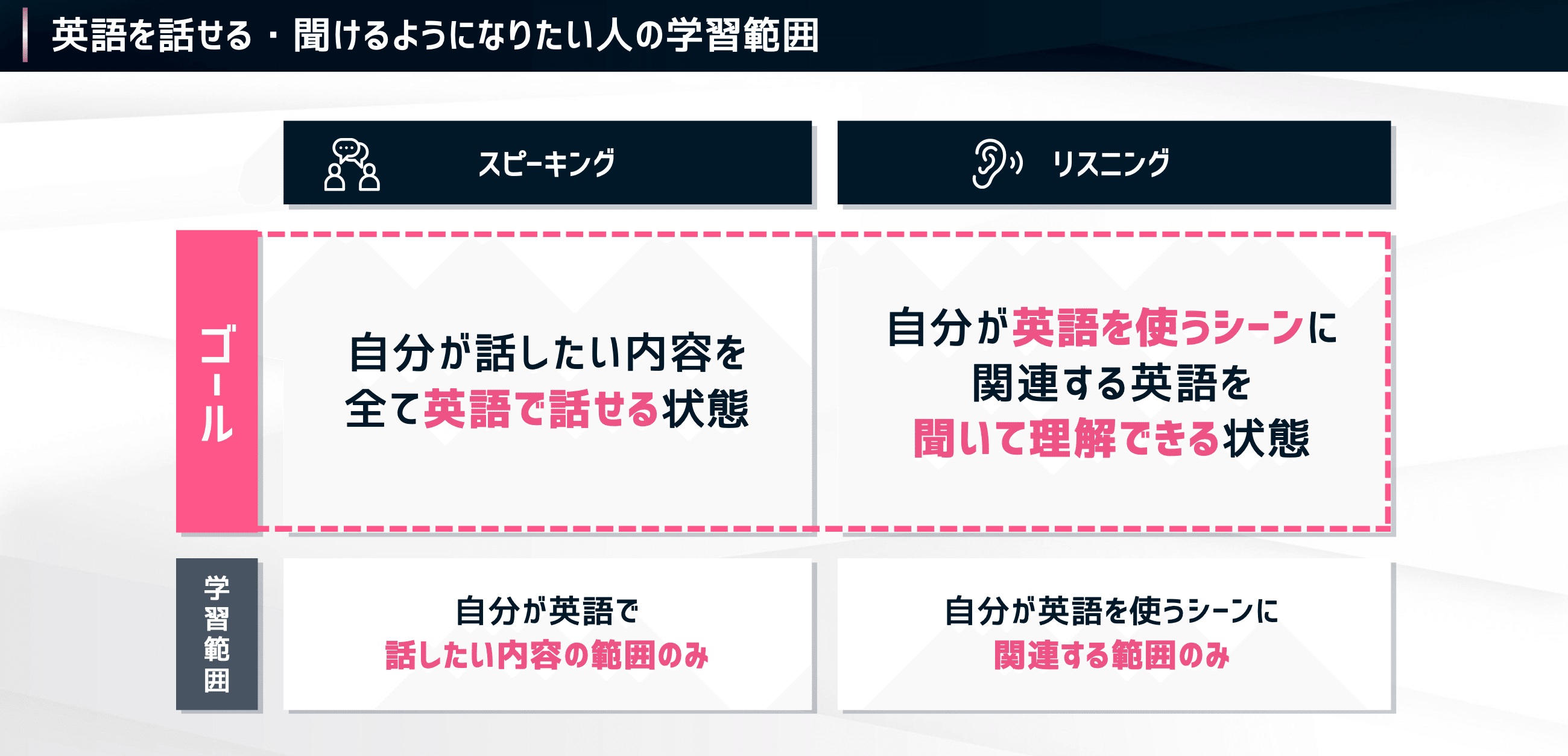“話したい・聞きたい”というゴールから逆算して、基礎スキルを学ぶ