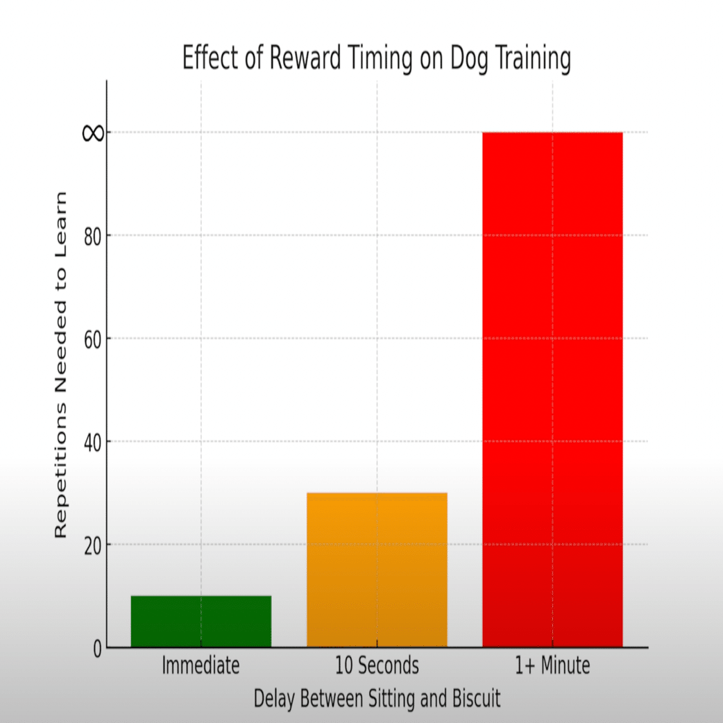 座った後に 10秒待ってからおやつ → 習得までに 3倍の回数 が必要